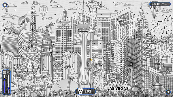 Find and discover 101 cute cats hidden throughout the Las Vegas landscape in this hand-drawn hidden object game. Can you find them all?